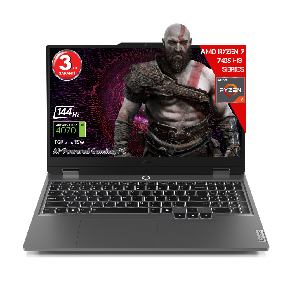 Lenovo LOQ 15ARP9 AMD Ryzen 7-7435HS 12GB DDR5 512GB SSD RTX4070 8GDDR6 15.6 IPS 144Hz FHD FreeDos 83JC00FGTR Dizüstü Bilgisayar (Yapay Zeka Destekli)