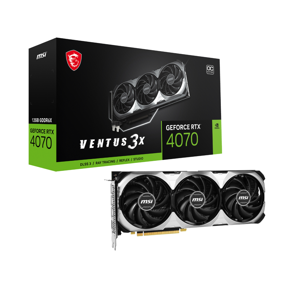 MSI GEFORCE RTX 4070 VENTUS 3X 12G OC, benzersiz soğutma teknolojisiyle donatılmıştır. 3 adet TORX Fan 4.0 ve büyük alüminyum soğutma bloğu, kartın sıcaklığını düşük tutar ve sessiz bir çalışma sağlar.